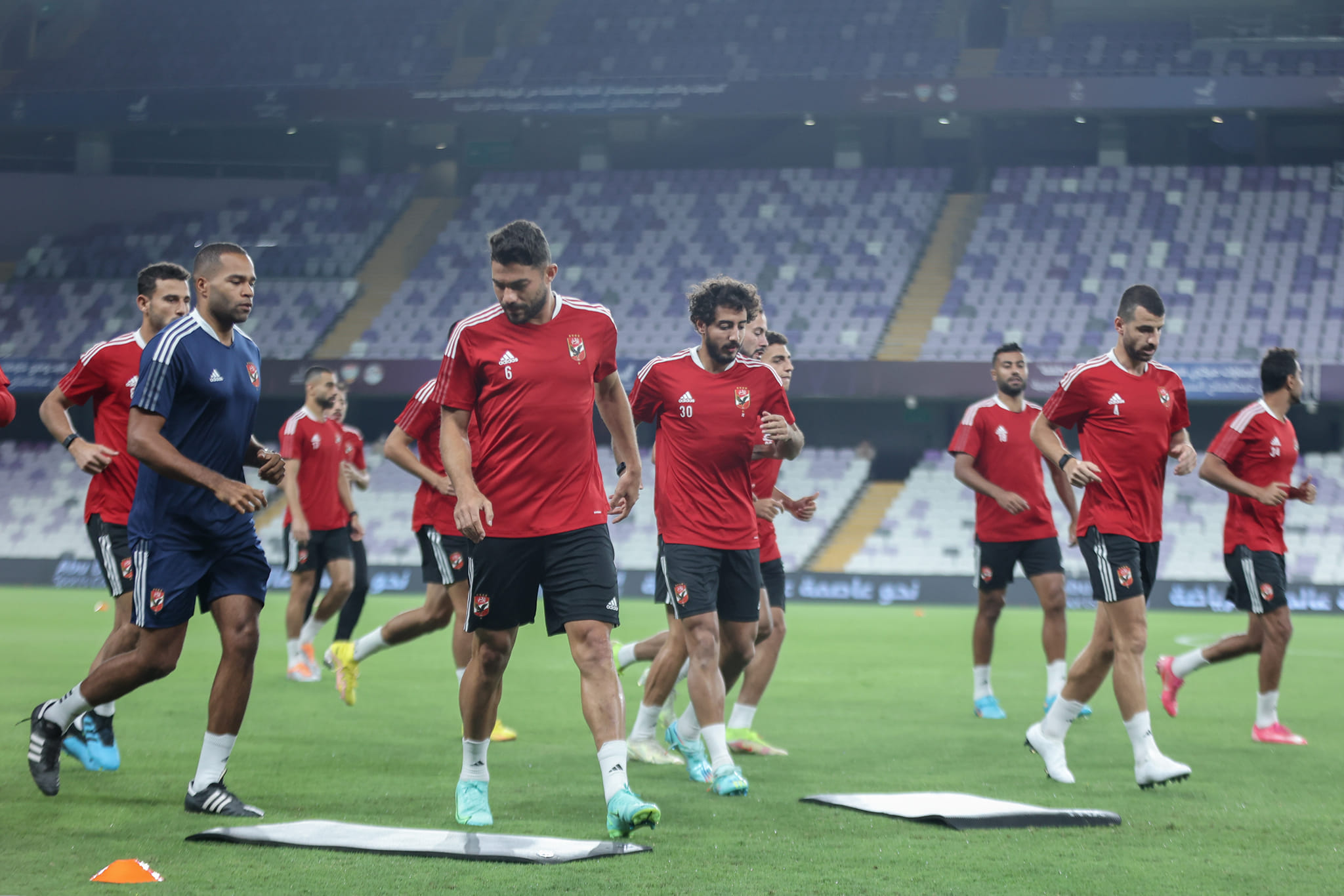 ونشرت قناة أبو ظبي الرياضية عبر حسابها الرسمي على تويتر، فيديو لوصول فريق الأهلي إلى ستاد هزاع بن زايد.