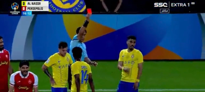 شهدت الدقيقة 16 من زمن اللقاء طرد علي لاجامي لاعب العالمي بعد تدخل قوي مع لاعب برسبوليس.
