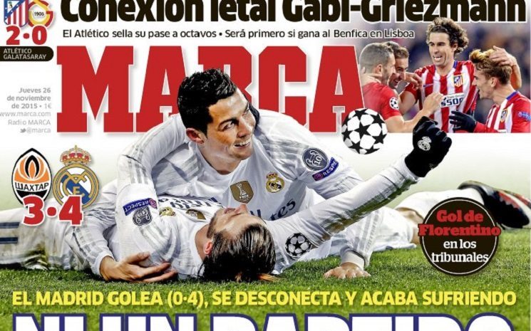 إليكم أبرز عناوين صحف اسبانيا الصادرة اليوم الخميس 26-11-2015 صحيفة ماركا : لا يوجد لعبة هادئة مدريد سحق شاختار 0-4…