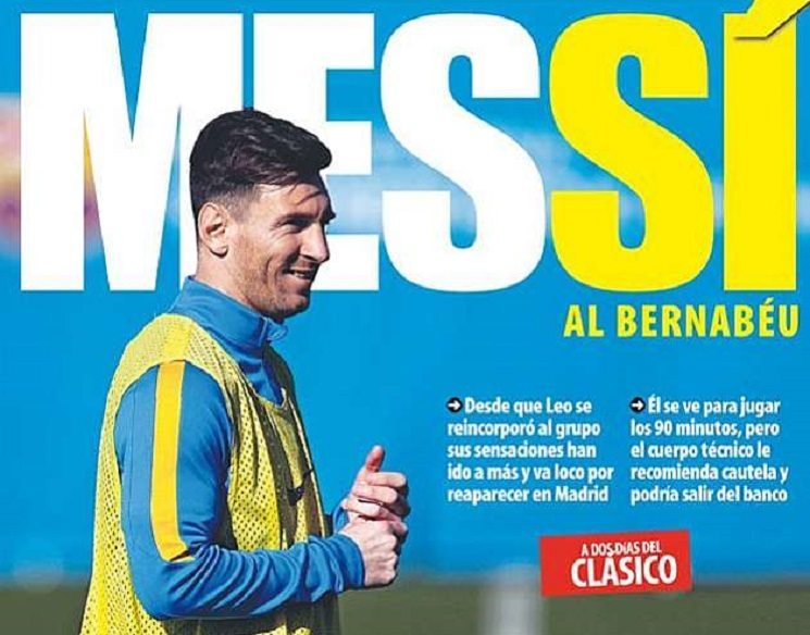 صَوت جمهور نادي برشلونة الاسباني على إستفتاء صحيفة “سبورت” الكتالونية حول مشاركة النجم الارجنتيني لاعب فريق برشلونة في مباراة الكلاسيكو…