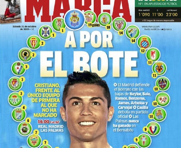 فيما يلي أبرز عناوين الصحف الأسبانية الصادرة اليوم السبت 31-10-2015 صحيفة ماركا : إلى الفوز بالجائزة الكبرى كرستيانو ضد فريق…