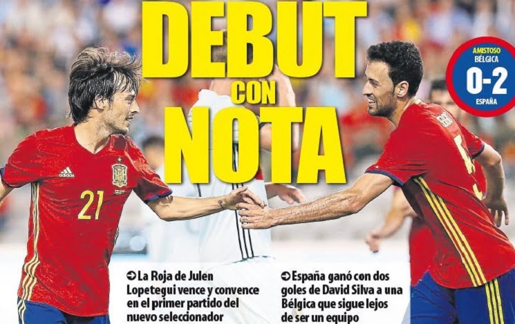 فيما يلي أبرز عناوين الصحافة الأسبانية الصادرة اليوم صحيفة ماركا : حفل موسيقي للبدء أسبانيا هدفين على بلجيكا أنشيلوتي :…
