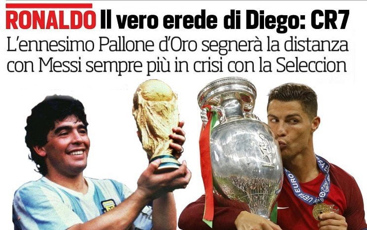 صحافة ايطاليا .. رونالدو يمحو ميسي و يحصد لقب مارادونا الجديد